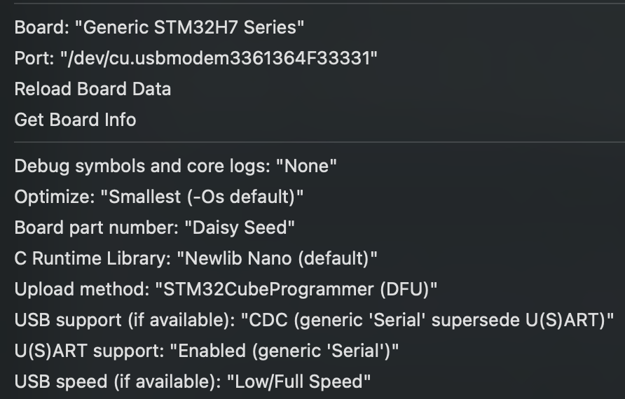 - For STM32Duino and Daisy setup, I followed the Arduino IDE setup guide located here on daisy.audio